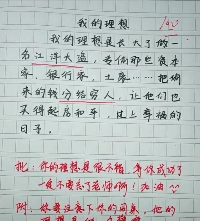 小学生作文 太有才 高中生自愧不如 老师的批语成为亮点